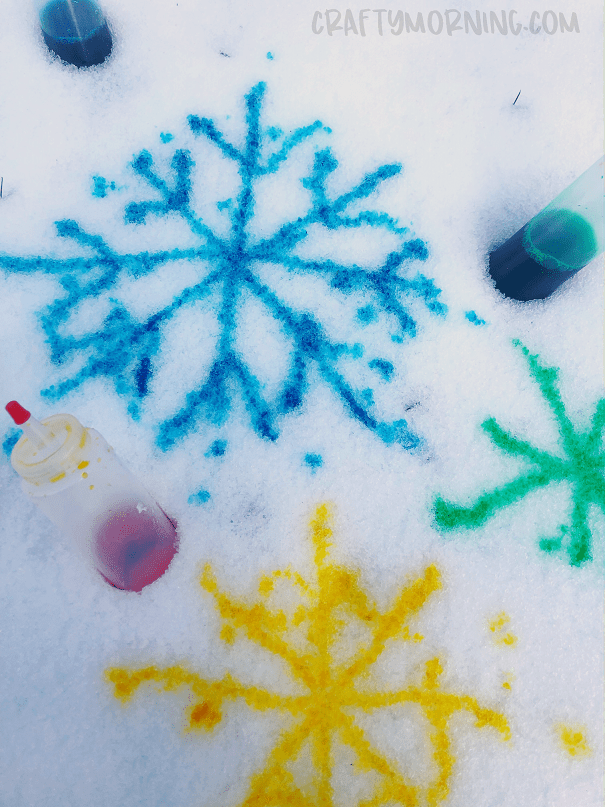 If there’s snow on the ground, get outside and make snow art with this snow paint from Crafty Morning. You’ll need squeeze bottles (like these ones), water, and food coloring for this. For some added fun, have your child help fill the bottles with water and food coloring—you can even turn it into a lesson on color mixing!
