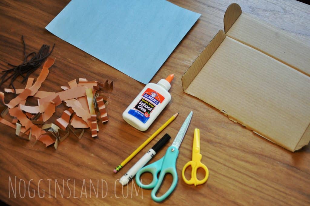 Take your preschooler outside and ask them to help gather materials that a bird might actually use to build their nest. You’ll want to make sure you stick to very small items that will stick to your cardboard easily with a bit of glue.